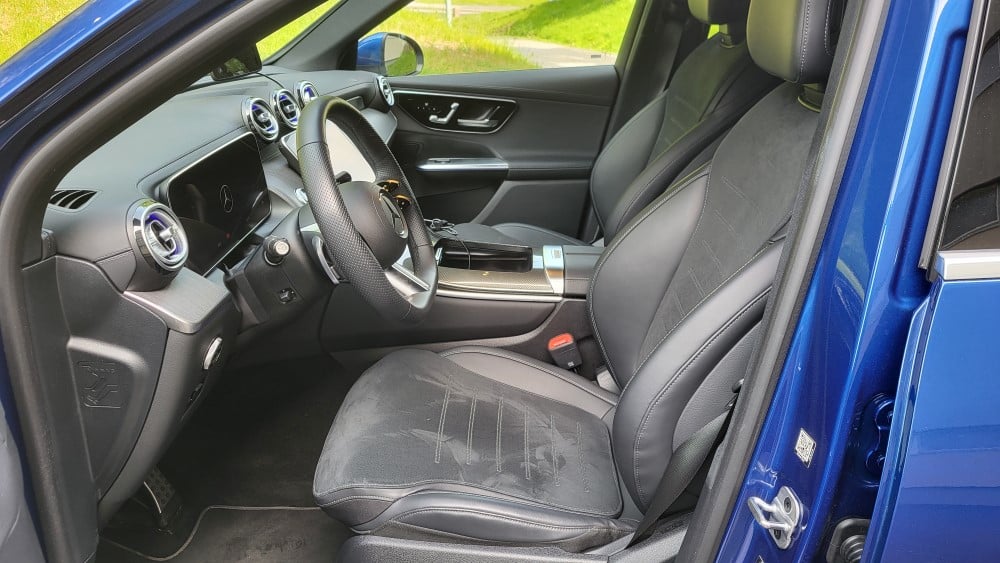 Our test car was equipped with the following additional accessories: AMG Line exterior, AMG Styling, electrically retractable tow hook, AMG alloy wheels, metallic paint, dashboard trim, centre console trim, Driver Assistance Package Plus, Keyless Go package, Guard 360 settings, Emergency Alert Package, MBUX with added reality navigation system, USB Package Plus, Traffic Sign Assist, Driving Dynamics Package and 60kW DC fast charging socket.