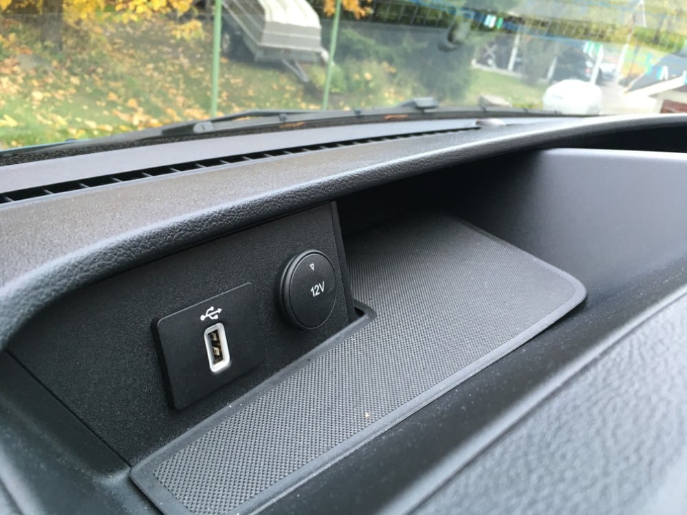 There are plenty of compartments in the cabin. The bottom of the handy overhead compartments is horizontal. There are also several bottle or mug compartments, a traditional glove box and a small open compartment in the roof. There is also plenty of storage space in the doors.