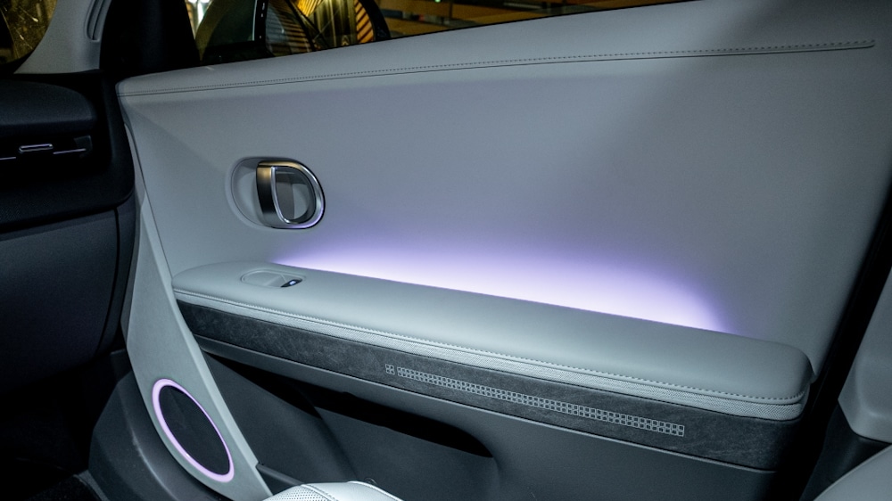 In terms of materials, it’s hard to find fault with the interior. The finish seems to be spot on and the materials are not the cheapest. The interior in the test car was a combination of light grey and black. The striking and dominant Korean-style purple interior mood lighting initially evokes somewhat strange thoughts in a Scandinavian environment.