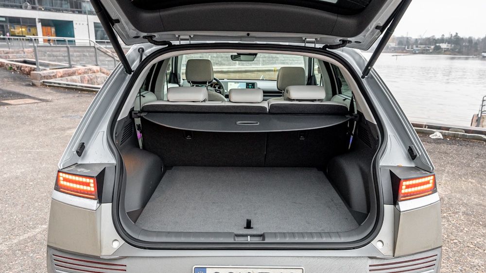 The boot is a reasonable 527 litres, and up to 1600 litres with the rear seats folded. The floor of the boot rises quite high and the difference in lift height is clearly noticeable if you move to the Ioniq 5 from a normal passenger car. Under the front bonnet is a small 57-litre storage area for things like charging cables.