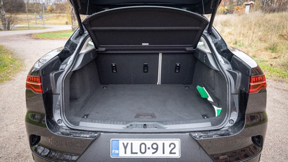 The battery has a capacity of 90 kWh and Jaguar claims a WLTP range of 470 kilometres. During the test drive, electricity consumption was in the range of 23-26 kWh/100km, which in real life is enough to cover around 350 kilometres on a single charge.