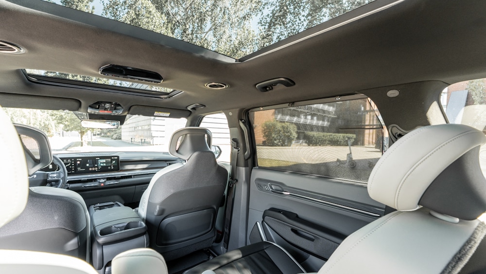 The EV9’s option list is short, as almost all the equipment comes as standard. A large glass roof with sunroof adds space and brightness to the cabin, and is available as an option, raising the car’s competitive starting price by a crisp €3,300.