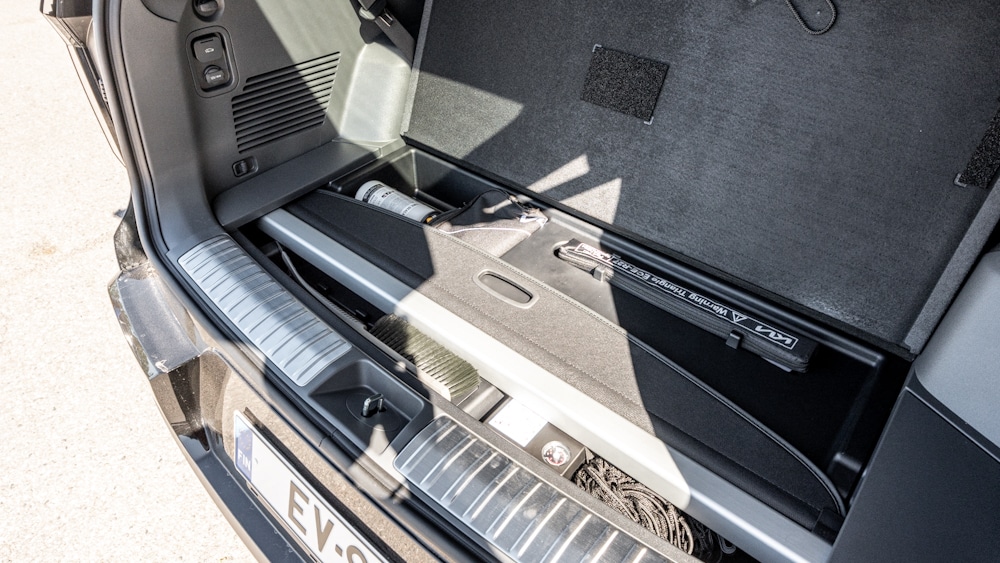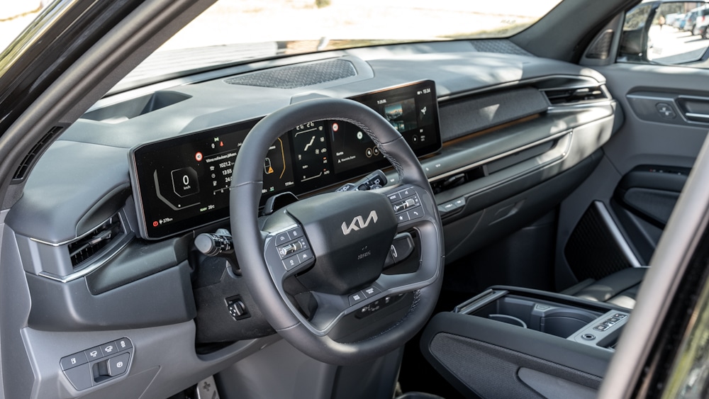 In the driver’s seat, comfort is not just about low noise levels and good seats. The EV9 also proves to be a pleasure to drive on a variety of roads. The car’s mass and large tyres make for an effortless ride even on the roughest roads. The EV9 literally swallows the bumps of less well-maintained dirt roads, and the driver is surprised time and again how even this bump didn’t feel the way he expected it to on the backside.