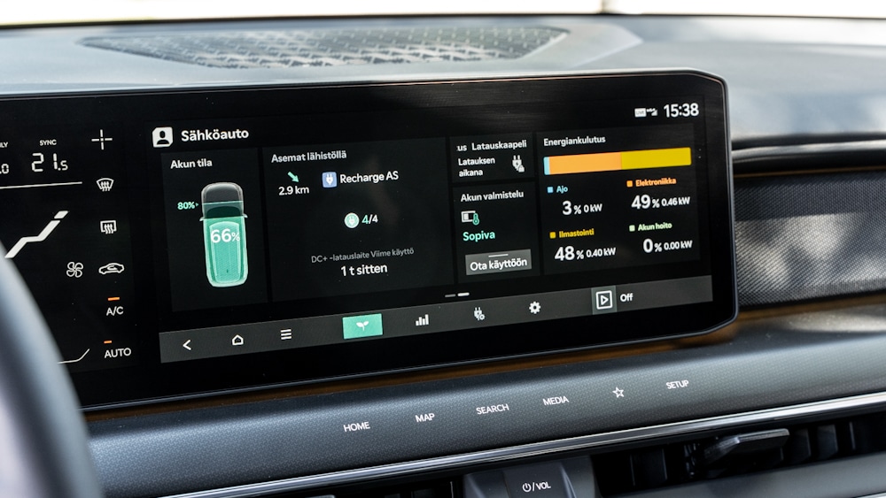 Another obvious area for improvement is the touchscreen displays on the car’s dashboard in terms of visual appearance and, in particular, usability. There is a lot of information and useful functions on the screens, but somehow the Korean presentation and user experience is not convincing. The air conditioning display always remains a separate display between the instrument panel and the instrument cluster.