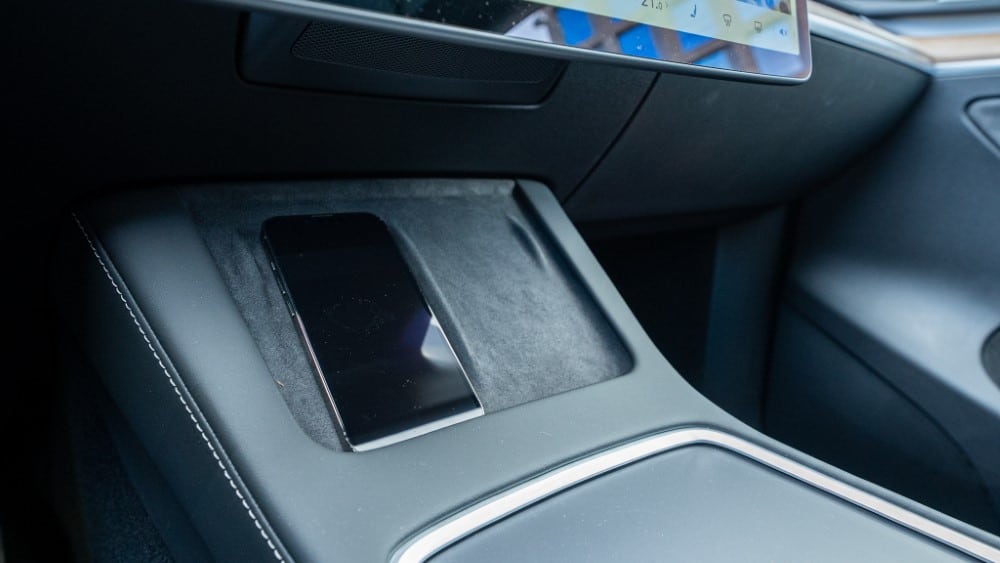Inside, the cabin is apparently identical to the Model 3. The very minimalist and stripped-down cabin consists of a 15-inch instrument cluster, a steering wheel with two roller controls and indicators and gearshift whisks. Below the centre screen are wireless charging points for two mobile phones.