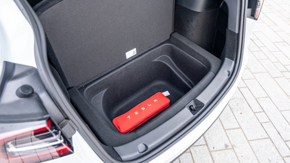 Compared to the Model 3, the outside has seen some product improvements in terms of paint protection. Larger splash plates at the front and a black plastic lower fascia and lower rear door protection film that has been replaced by metal instead of black plastic protect the body paint from stone chips, which has been a weak link in Tesla’s sensitive paint finish.