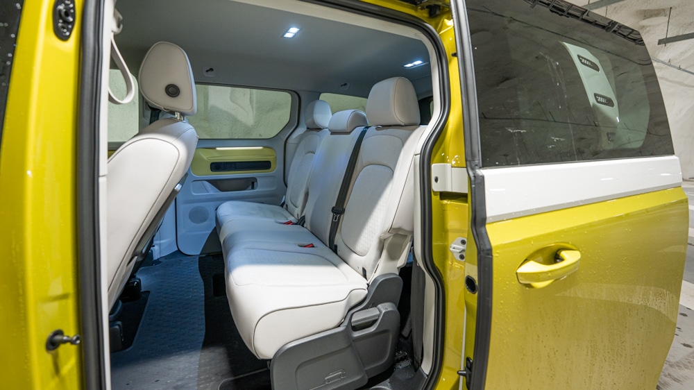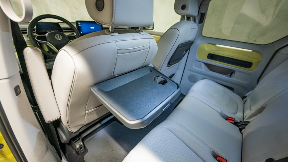 A slight surface roughness is noticeable in the chassis under certain driving conditions, but it even contributes in a positive way to a distant resemblance to a traditional ‘van, and distinguishes the Buzz’s driveability from that of conventional cars and SUVs.
