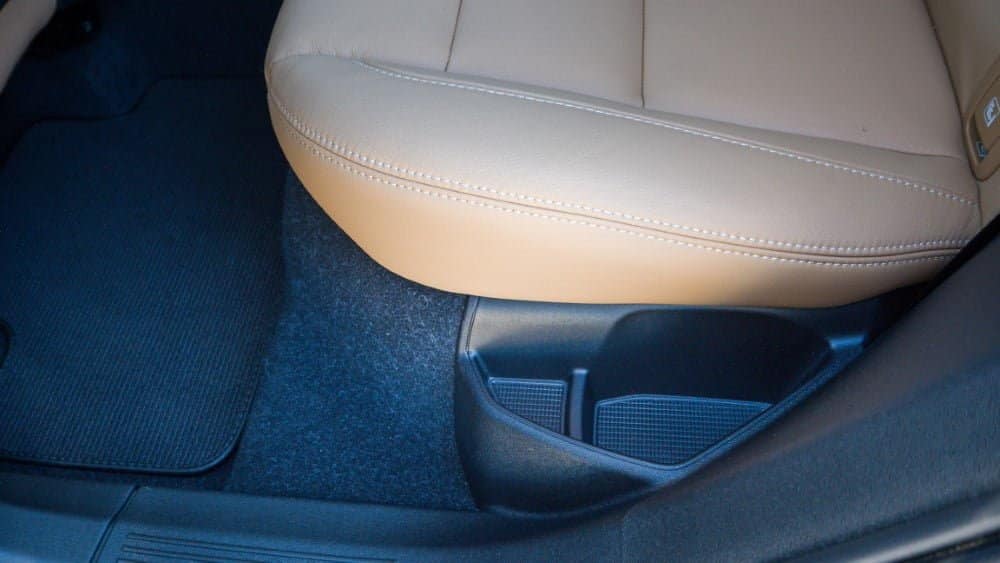 In the luggage compartment, there is a decent-sized shelf to neatly store and hide the charging cables. Between the rear seat and the doors are small storage compartments for rear passengers’ loose items.